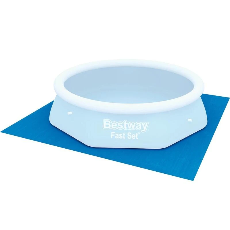 * Terrain carré de piscine * Longueur : 274 cm * Largeur : 274 cm * Approprié pour des piscines avec un diamètre allant jusqu’à 244 cm * Couleur : bleu