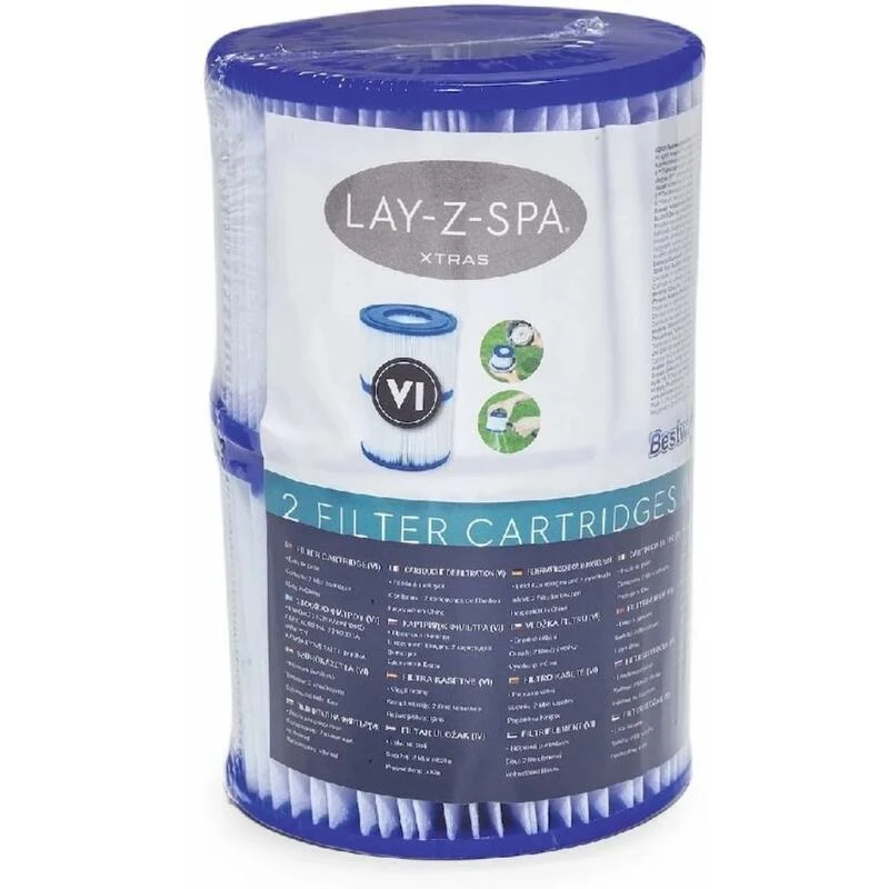 Pack duo incluant 2 piècesCartouche filtrante type VI compatible avec tous les modèles de Lay-Z-Spa : Miami, Tahiti, Palm Springs, Helsinki, Maldives, Hawaii, Honolulu, Paris, St. Moritz, Milan et Hav