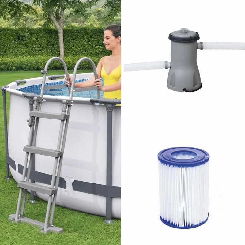 Piscine tubulaire BESTWAY – Peridot 14.5m² piscine ronde 4.3m avec pompe de filtration. échelle et bâche de protection. piscine hors sol. armature acier