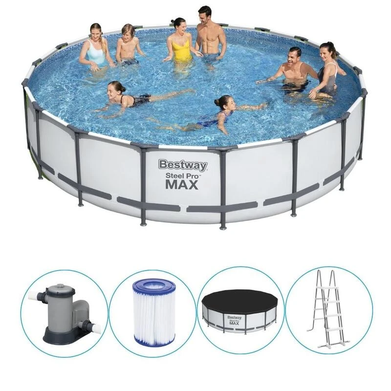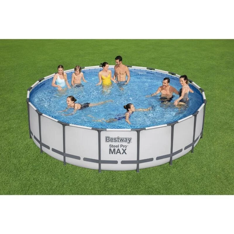 Faites entrer le sentiment de vacances dans votre maison avec cette belle et grande piscine Steel Pro MAX de Bestway